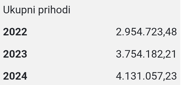 Vodovod Đakovo ima ukupne prihode: 2022. – 2.954.723,48, €2023. – 3.754.182,21, €2024. – 4.131.057,23 €.