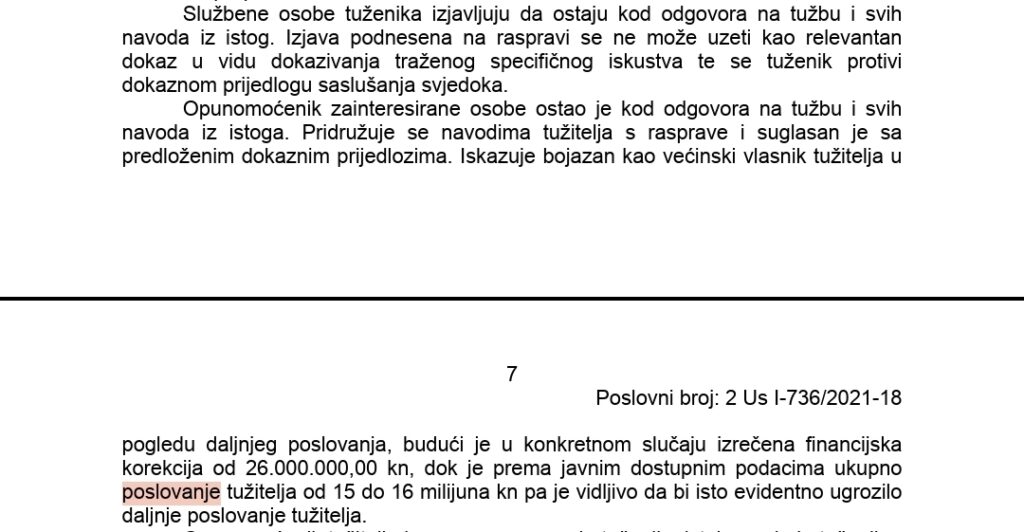 Na raspravi su, doslovno, iskazivali bojazan da će “financijska korekcija od 26 milijuna kuna ugroziti poslovanje Vodovoda”, jer im je godišnje poslovanje 15–16 milijuna kuna. Drugim riječima – sami su priznali da kazna znači kolaps!