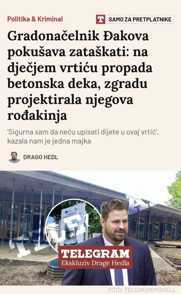 Nakon svega – nakon što je cijena projekta narasla za više od 850.000 eura, nakon što su se rušile konzole, mijenjali zidovi, dodavala čelična konstrukcija, nakon što su ispravljani propusti koji nikad nisu smjeli proći reviziju… Nakon što je projektantica vrtića ranije gradila kuću gradonačelniku, i nakon što se sve više spominje tazbinsko-rodbinsko-povjerenički krug oko poslova i ugovora…