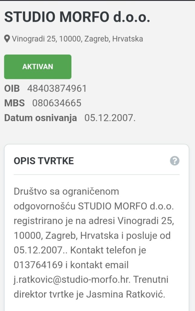 Studio Morfo d.o.o., tvrtka kojom upravlja projektantica Jasmina Ratković – osoba koja je projektirala i vrtić Sjever i kuću gradonačelnika Mandarića – godinama posluje s gubicima. 2022.: gubitak -3.481,19 €2023.: gubitak -10.553,24 €2024.: tek simbolična dobit od 2.668,25 €.