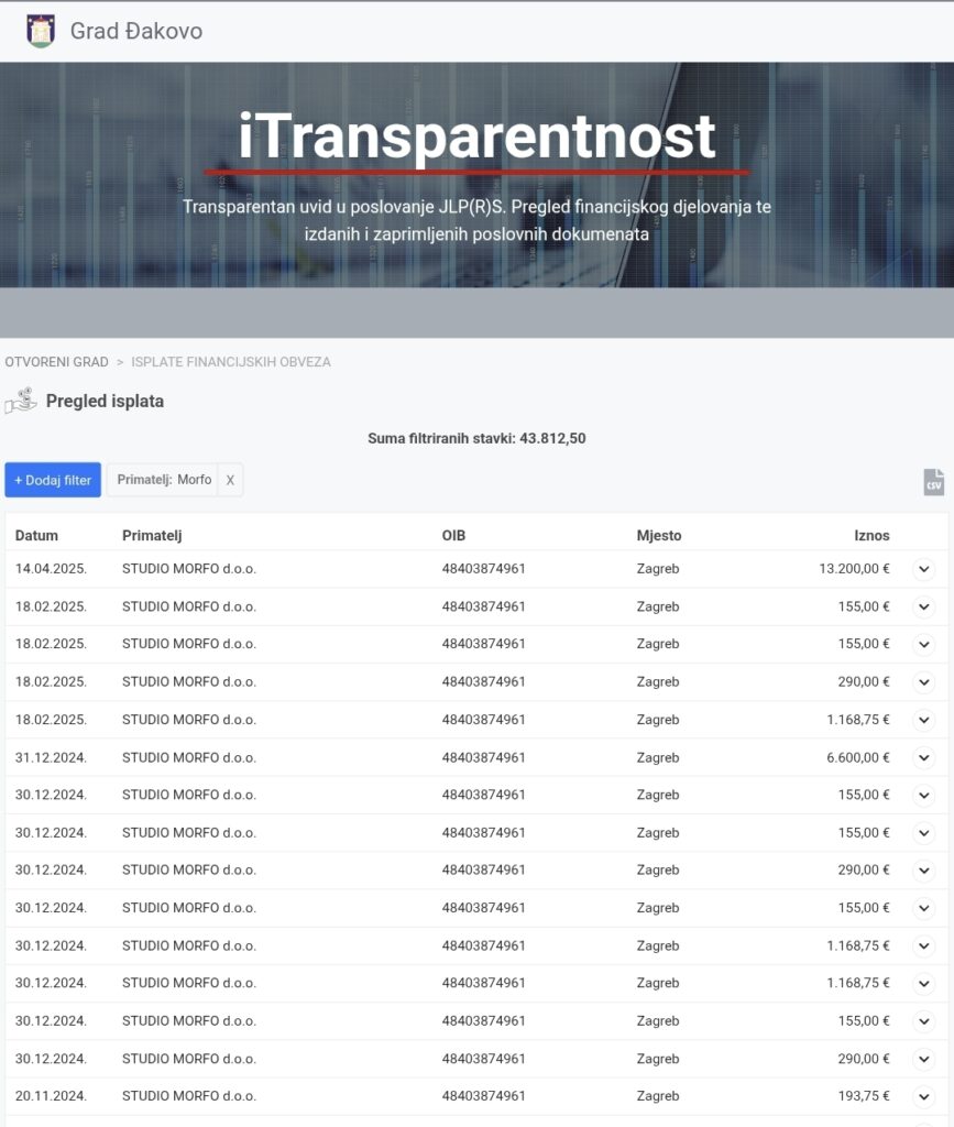 Od 01.01.2024. do danas prema sustavu eTransparentno grad je platio Jasmini 43.812,50 eura, skoro kao cijeli promet tvrtke u 2024. godini?!
