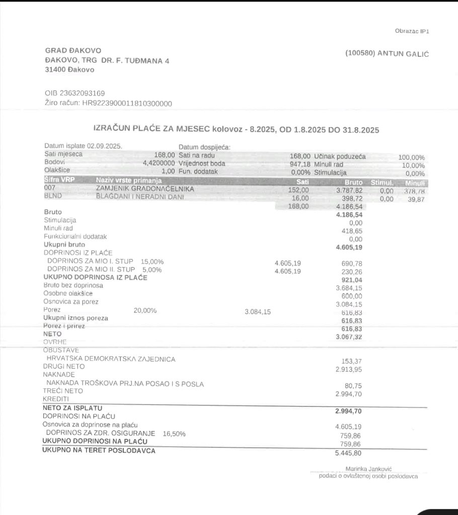 Papir ne zaboravlja. Više od 350 tisuća eura isplaćeno je iz gradskog proračuna na račun dogradonačelnika u osam godina, dok se Đakovo još uvijek bori s istim problemima koje je imalo na početku njegova mandata.